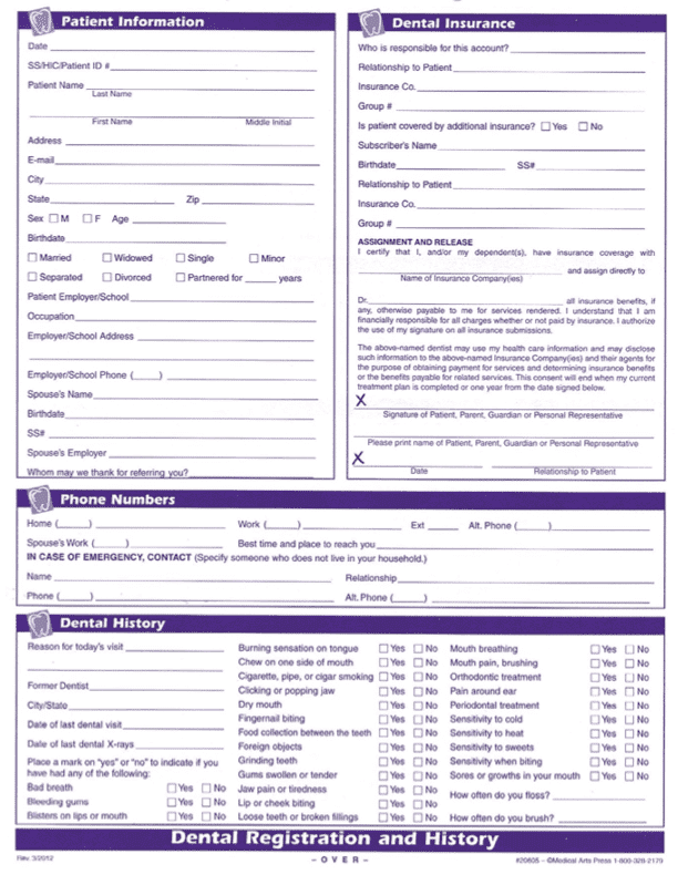 This form relates to patient information, health history, and insurance information.